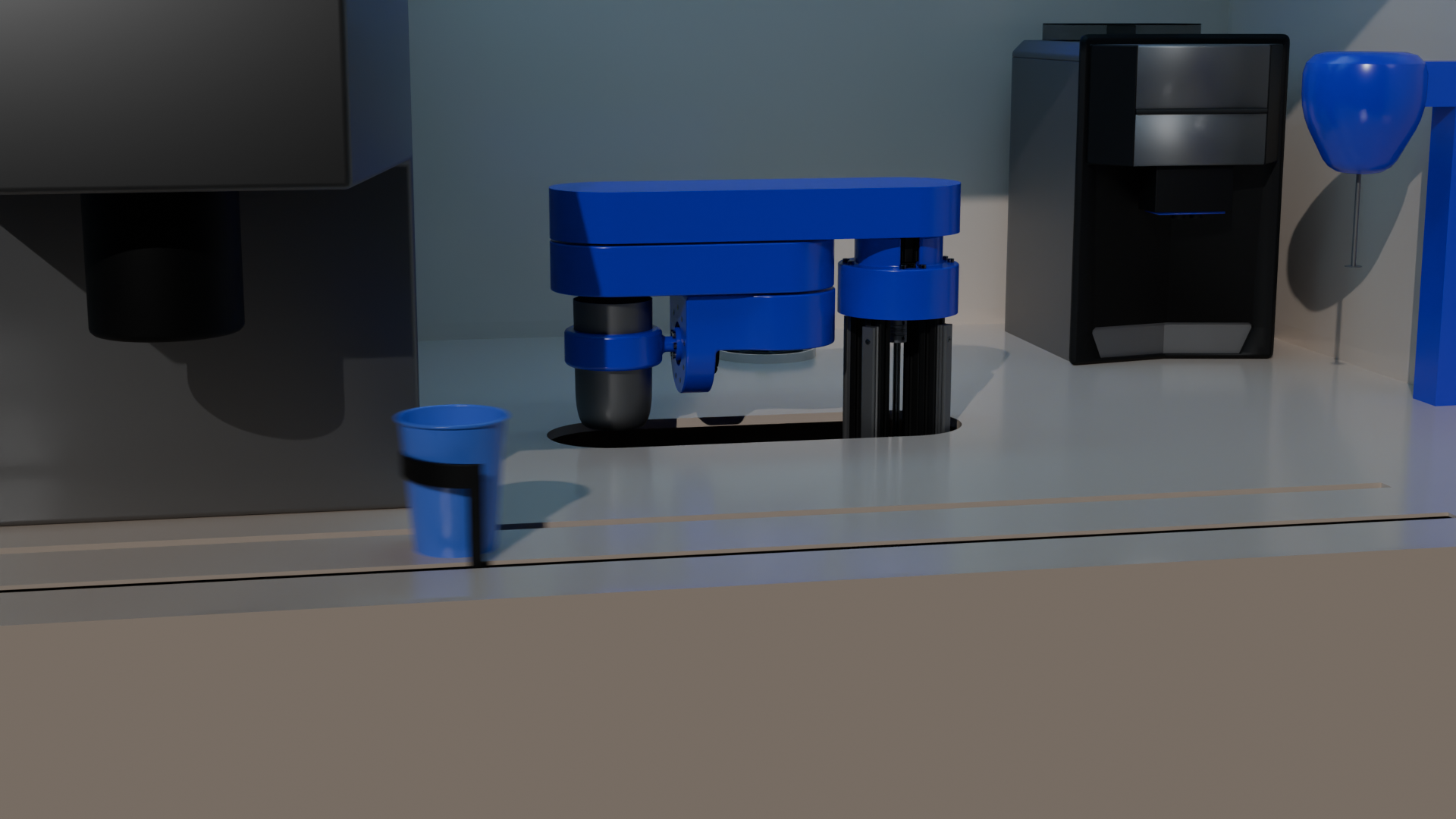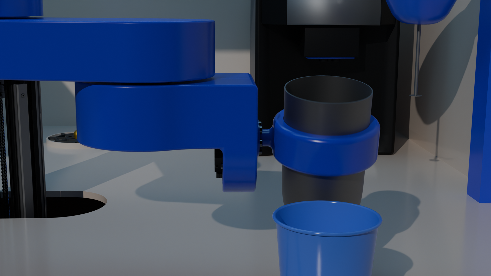 - A robotic arm that handles the physical workflow (ice, coffee, mixing, pouring).